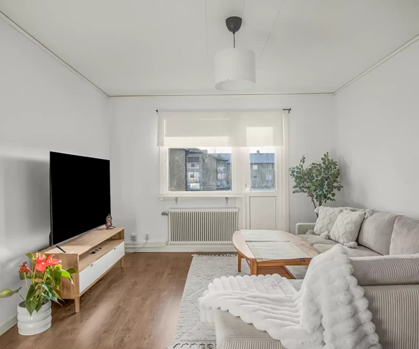 Mysig lägenhet med balkong och egen bastu – endast en halvtrappa upp