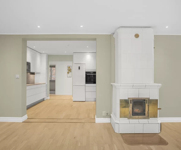 Den charmiga kakelugnen skapar en mysig atmosfär, och de goda förvaringsmöjligheterna gör vardagen smidig. Det rymliga uterummet förlänger säsongen och erbjuder en härlig plats att njuta av året runt.