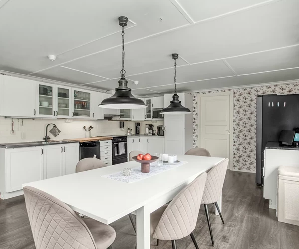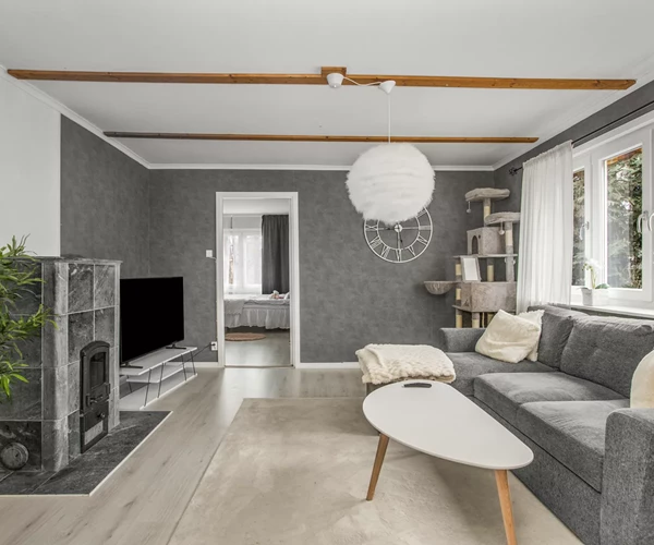 Planlösningen passar perfekt för den större familjen med hela 6 sovrum, varav 4 på övre plan och 2 på nedre plan. På övre plan finns även ett rymligt och inbjudande vardagsrum där en täljstenskamin skapar en varm och trivsam atmosfär.