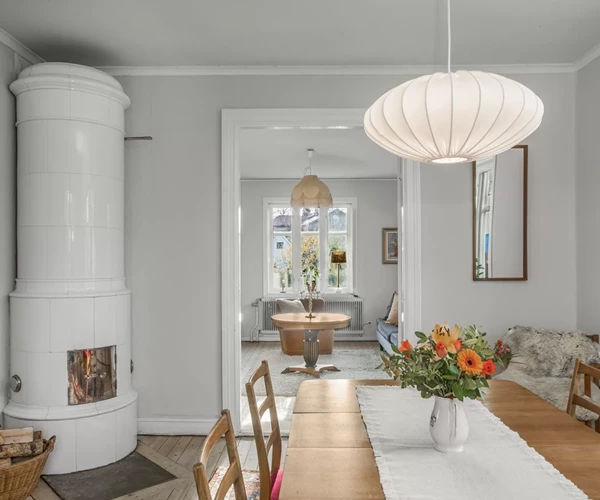 Huset bjuder på klassisk svensk arkitektur med ljus träfasad och vackra originaldetaljer som bevarats med omsorg. Den genuina känslan av historia förstärks av att huset varit i samma familjs ägor sedan 1932. Invändigt möts du av otroligt fina originaldetaljer såsom plankgolv, spegeldörrar och två kakelugnar som skänker både stämning och tidstypisk karaktär. Kakelugnen på entréplanet fungerar enligt säljaren men behöver godkännas av skorstensfejarmästare, och kakelugnen på övervåningen är för närvarande inte i bruk.